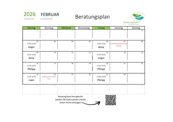 Beratungszeiten Februar 2026
